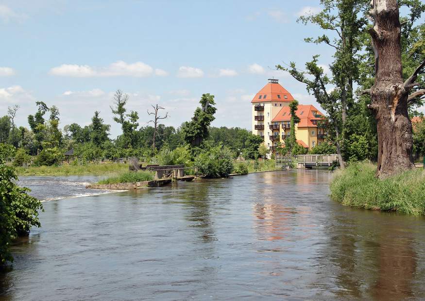 Die Schlossmühle Walda, ein Wohnkomplex für jung und alt, versorgt mit Strom aus dem anliegendem Fluss und umgeben von einem wunderschönem Park.
